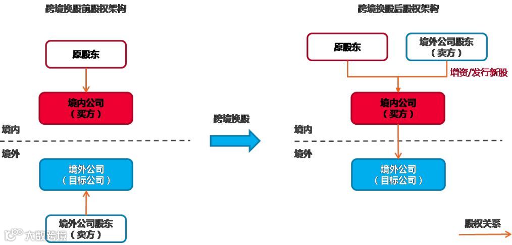 “跨境换股”首现于《关于外国投资者并购境内企业的规定》(“10号文”)[1],简单说就是境内公司(作为买方)用自身的股权作为对价收购境外目标公司的股权,最终,境内公司变成境外目标公司的股东,而境外目标公司的股东(作为卖方)成为境内公司的股东。