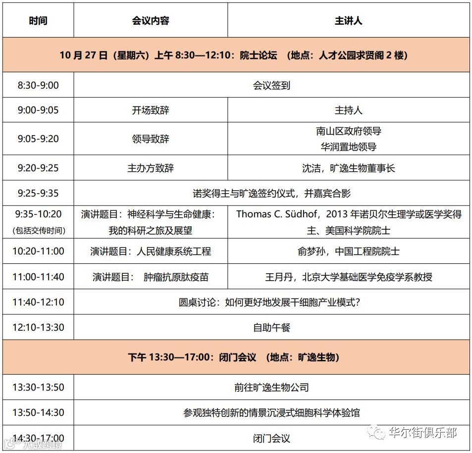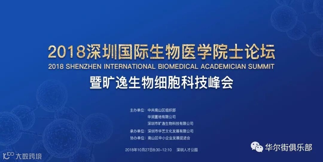 为交流、探讨细胞科技在医学领域的应用;研究细胞科技产业时下最有效的营销模式;引进高端人才、落地生物产业项目,联合促进诺贝尔奖科学家在深圳成立实验室,推动细胞科技产业的发展,由中共南山区委组织部、华润置地有限公司、深圳市旷逸生物科技有限公司主办,深圳市华艺文化发展有限公司承办,南山区中小企业发展促进会协办的2018深圳国际生物医学院士论坛暨旷逸生物细胞科技峰会将于2018年10月27日在深圳隆重举行。会议以“生物细胞医学在临床上的应用”为主题,将围绕神经学、免疫学等生物细胞医学领域的热门研究与营销模式展开探讨。