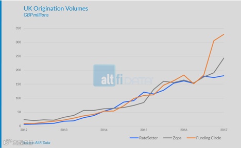 AltFi重点分析了美国网贷机构 Prosper 和英国同类平台 RateSetter 的业绩表现。Prosper 在3月和4月的净贷款利率呈现增长,而 RateSetter 在4月和5月却呈现了净负贷款利率。同 Funding Circle 和 Zopa 相比,RateSetter 从去年9月起的发贷量呈下降趋势。