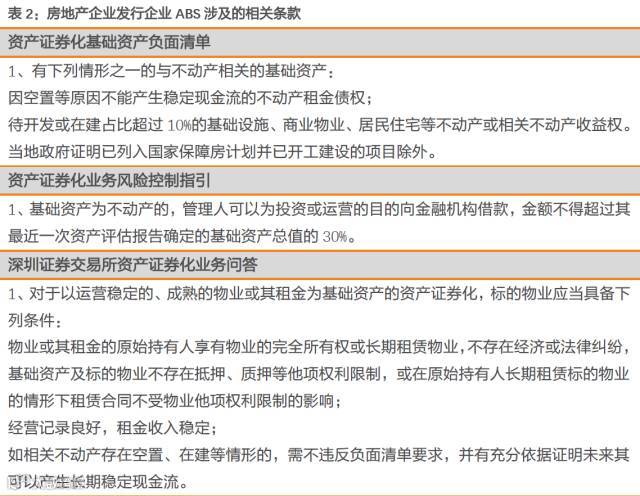 我国地产企业主要的资产证券化融资方式为企业资产证券化。目前监管要求较宽松。只需要符合法律法规规定,权属明确,能够产生稳定、可预测现金流,且基础资产未被列入负面清单即可。