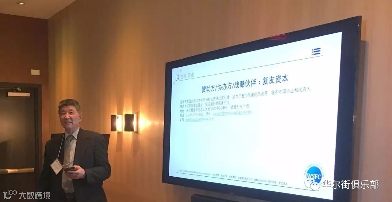 接下来,本次会议的赞助方协办方复友资本的合伙人周谷声先生给大家介绍了复友资本以及在Fintech方面的关注;俱乐部还特别感谢了建工美洲公司提供了场地赞助,感谢麦子金服和俱乐部的长期战略合作伙伴关系。