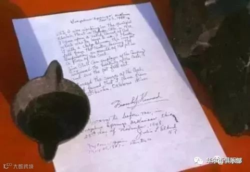 一九一二年,美国俄克拉荷马州的电子厂员工签名证实发现了这只从三亿年前的煤里掉出的铁锅。