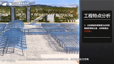 深圳国际会展中心项目用钢量为全球房屋建筑领域之最,总用钢量达22万吨。