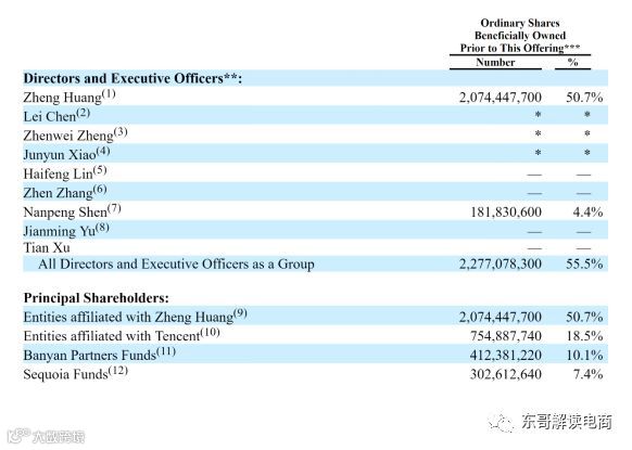 特别需要指出的是,黄峥现在的持股比例高达50.7%,这是很多临近上市的企业所不具备的,比如雷军的持股比例为31.4%,刘强东不到20%,王兴更是只有11.4%美团股份,可见黄峥本人对拼多多的发展拥有绝对的话语权。