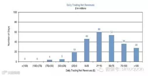 图表 4 高盛2014年VAR中所有头寸每日交易净收入的频率分布