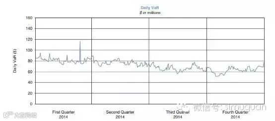 下图是高盛2014年4个季度每天的VAR值。