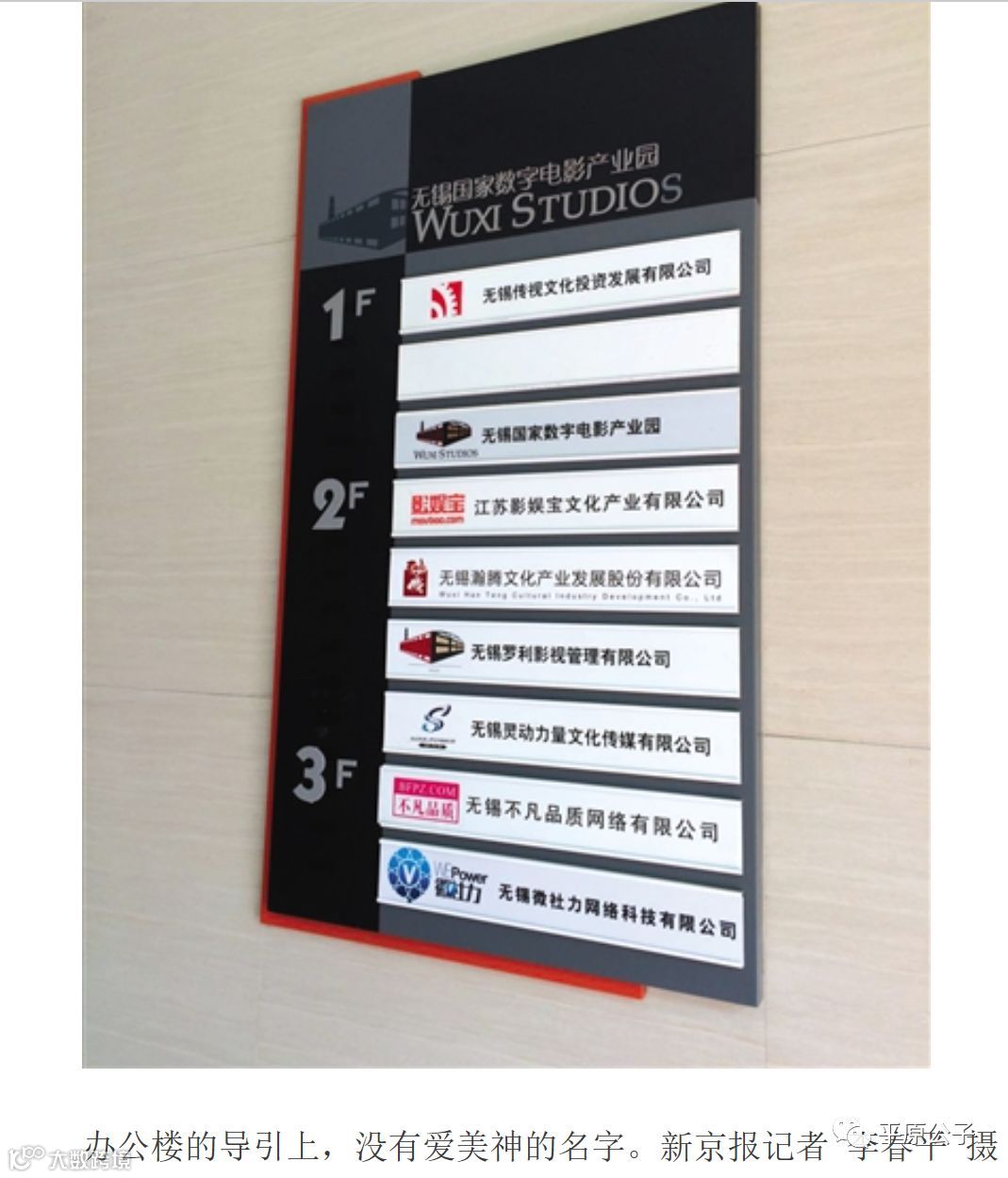 人家记者逐栋逐层“地毯式”走访了“国家数字电影产业园”内的各栋建筑,也没有找到无锡爱美神影业的办公场所。多位园区内的办公人员表示,他们并未听说过园区内有名为“爱美神”的影视公司。