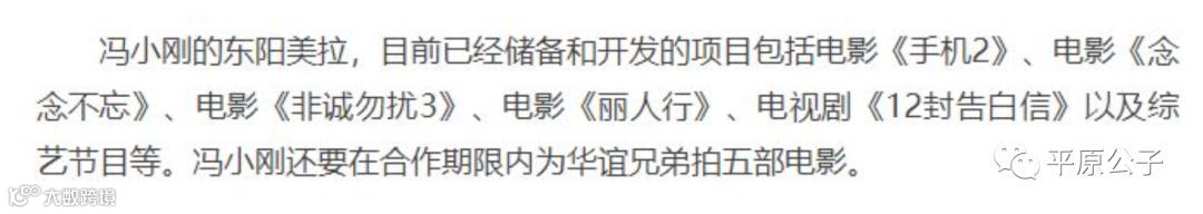 为什么四家大资本能出这钱给华谊兄弟?为什么华谊兄弟要白送10亿给冯大导演?因为冯小刚承诺了,2016年东阳美拉经审计后净利润达到1亿元,每年上浮15%。怎么做到?拍电影呗!靠冯小刚这张老脸,以及一肚子坏水儿的才华,再加上炒作投机的本事,卖卖情怀,炒炒老IP,总能弄出个票房大卖的电影,所以,你看他这不就开始捣鼓《手机2》了吗?只要票房大卖,他不但能挣影迷的钱,还能带动华谊兄弟的股价上涨,一举多得,多方收益。