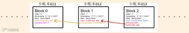 保持分散的账本拷贝的内容一致,防止恶意篡改,不能像共享单车那样依靠情怀,只能依靠提高成本,提高做假账的成本。我们先说一下比特币账本的长相。每个记账人手上的账本拷贝是一个由很多“小账本”按时间顺序串接而成的(如下图)。