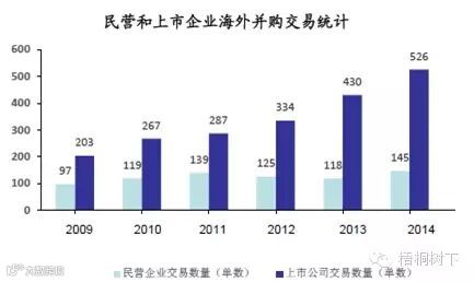 民营企业2014年在海外并购的交易数量和金额上的增长情况超过国有企业,成为中国企业海外并购活动中越来越重要的力量。复兴、弘毅投资等民营资本在海外收购方面日益活跃