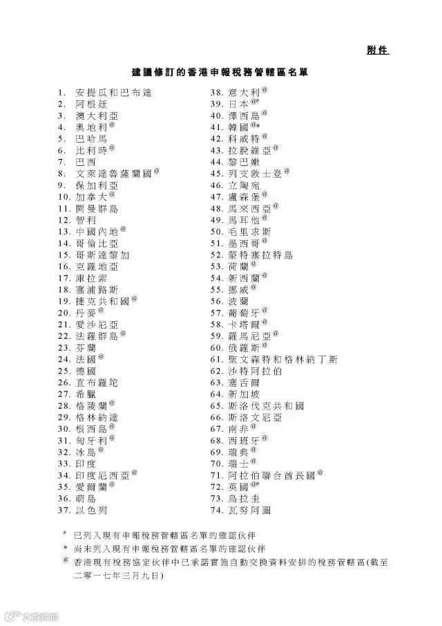 香港立法会作出划时代的建议决议,71个国家一次性列入申报税务管辖区名单