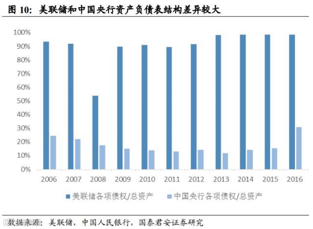 美国之所以要采用“缩表”,是因为此前实行QE政策积累起了庞大的资产。但中国并未实施相应政策,能够拿去缩表的资产也十分有限。