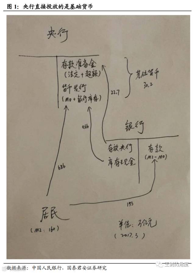 央行负责一国货币总量的投放与调节,在现行的“中央银行—商业银行”二级银行制度下,央行直接操作的,只是向银行投放基础货币。银行再在此基础上向社会公众投放广义货币(或称存款货币)。当然,后一个步骤也受央行控制。截止2017年3月,我国基础货币余额为30.2万亿元。