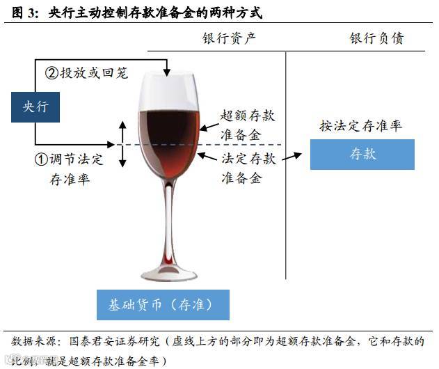 央行主动调节超额存款准备金的方法主要有两类。一是调整法定存款准备金率,比如降低法定存款准备金率,则部分法定存款准备金“解冻”成为超额准备金,央行在货币政策报告中将这一方式称为“改变基础货币结构”,也就是改变基础货币总量中法定、超额两者的结构,而不改变基础货币总量,当然也不改变资产负债表规模;二是通过公开市场操作,包括逆回购、再贷款、MLF、央票等方式,直接投放或回笼存款准备金。不管哪种方法,其最终目的,是将银行间市场的流动性和利率维持在合适的水平,以实现央行的调控目标。