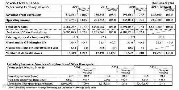 7-Eleven日本公司隶属于日本柒和伊控股集团(SEVEN&i),是集团的基石和盈利主力军。我从其集团官方网站上,查阅了7-Eleven日本公司2016财年(从2015年3月1日到2016年2月29日,下同)的财务表现,零售总额42,910亿日元(按2016年2月29日当日人民币汇率中间价100日元对5.763计算,下同),相当于2,473亿人民币,在全日本便利店市场份额超过40%,是第二名的两倍;收入7,936亿日元,相当于457亿人民币,加盟费及相关收入货币化率超过18.5%;毛利7,163亿日元,相当于人民币413亿,毛利率超过90%;税后净利润超过1629亿日元,相当于93.8亿人民币,在集团旗下兄弟公司伊藤洋华堂、崇光和西武百货板块业务整体出现亏损的情况下,贡献了集团101%的利润;净利润率高达20.5%,超过全球所有零售企业(全球平均水平在3%左右),给我带来了巨大的震撼。