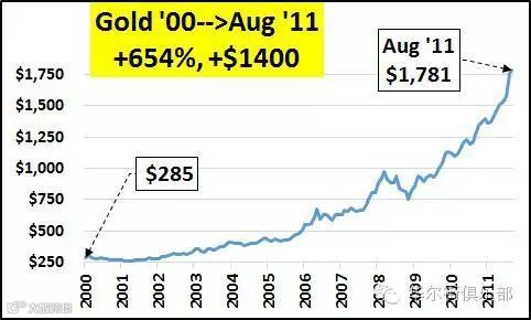这一期间,黄金价格上涨至1400美元,涨幅达到650%(黄金最高时达到1911美元/盎司,并收于1850美元/盎司)。