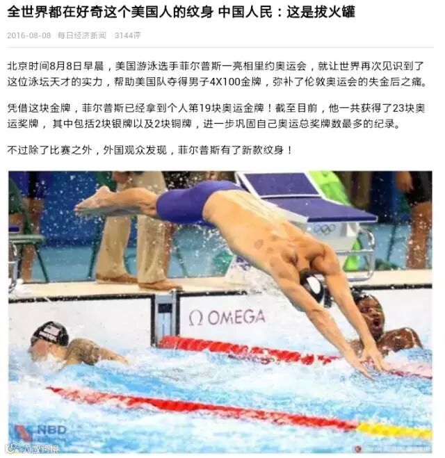 有些公共号甚至用了这样的标题“奥运会上最出风头的居然是中医神技:拔火罐!19枚金牌得主菲尔普斯也是它忠实信徒!”来表达难以抑制的兴奋之情。