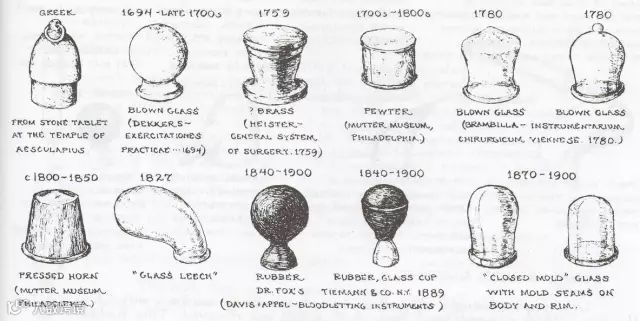 各式各样的西方吸杯(Antique Medical Instruments, C. K. Wilbur, Lancaster: Schiffer Publishing Ltd. U.S.A, 2003, 5th edition,117)