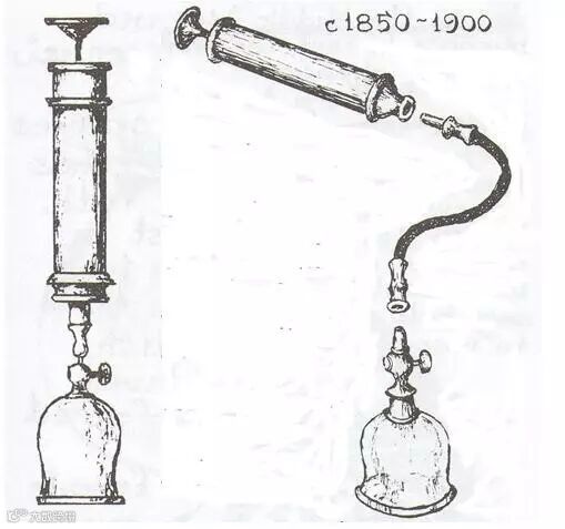 在西方,牛角杯从古代一直沿用至19世纪上半叶;玻璃杯在17~19世纪被应用广泛,19世纪出现了名为“Syringe-cup combinations”(注射器与吸杯相结合)的新式器具;而在中国,这种器具其实不过区区数十年的历史。