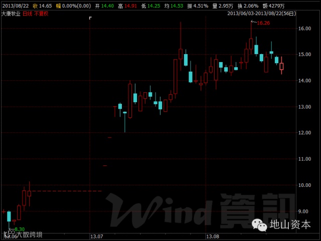 2013年6月13日公司宣布定增,引入“鹏欣系”。2014年6月4日再次宣布定增,筹资收购大股东(鹏欣系)拥有的两个牧场。从鹏欣系入股到目前,大康牧业(002505) 的股价从6元涨到16元。