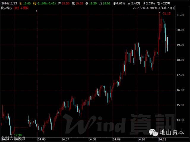 2014年5月21日公司宣布定增,定增对象为永银投资和硅谷久融。其中永银投资是大股东和公司高管一起成立的公司,硅谷久融是天堂硅谷设立的基金。此股票走势非常好,呈直线状上升。