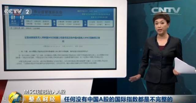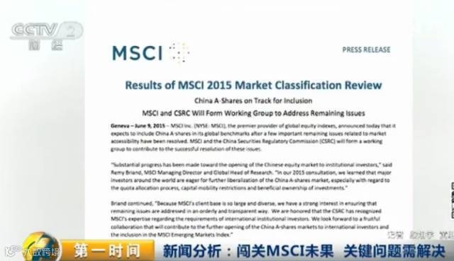 纽约当地时间6月14号下午,也就是北京时间今天凌晨5点,全球知名指数编制公司MSCI在纽约总部发布新闻稿称,延迟将中国A股纳入MSCI新兴市场指数。A股将继续保留在2017年评估系列之中。MSCI表示,国际机构投资者希望在A股被纳入其新兴市场指数之前,看到A股市场准入情况得到更进一步的切实改善。