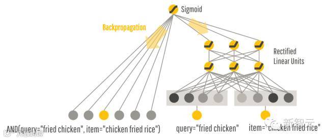 在你 App 的第二版,你希望记住对每个请求内容匹配最好的物品。于是,你用 TensorFlow 训练了一个线性模型,通过宽广的交叉乘积特征变换来获取“请求-物品二元组”如何与目标标签 (是否被吃了) 相关的信息。这个模型对每个物品计算出消费概率 P (消费 | 请求,物品),然后你的 app 送出最高消费概率的菜品。例如,模型学到请求=“炸鸡” (fried chicken) 并且物品="鸡肉华夫饼" (chicken and waffles) 概率很高,而请求=“炸鸡” (fried chicken) 并且物品=“鸡肉炒饭” (chicken fried rice) 的概率较低,尽管后者的字符匹配数更多。换句话说,FoodIO 2.0 在记忆用户的喜好上面表现不错,于是你的 app 得到更多认同。