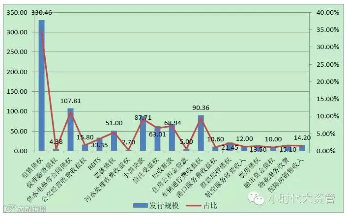 取得亚军的是以市政水/热/电收费权为基础的资产,规模达到107.81亿元,占比11.26%;