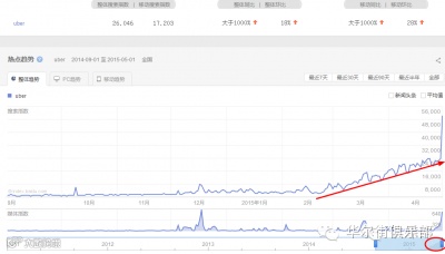Uber 于2014年2月13日宣布正式进入中国市场,恰好赶上滴滴、快的拼命烧钱抢市场时间,也真是蛮拼的。Uber 在内地差不多花了一年的时间实验、推广,覆盖了全国十一大城市。从上图看得出今年2月以后指数上升,这个与其市场的全面推广不无关系。