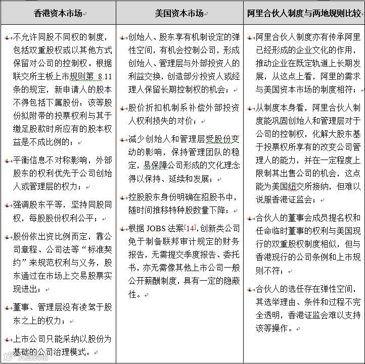 2、香港、美国资本市场的法律规定及与阿里合伙人制度的比较分析