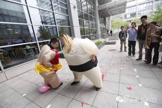 原本西装革履的石博盟(Scott Beaumont)从一个外宣活动中抽身出来,换上了印有谷歌logo的白色T恤,融入了欢庆活动的人群中。他手插在口袋里,咧着嘴笑,看着两个身着充气外服的游戏者互相踩踏捆在对方身上的气球。