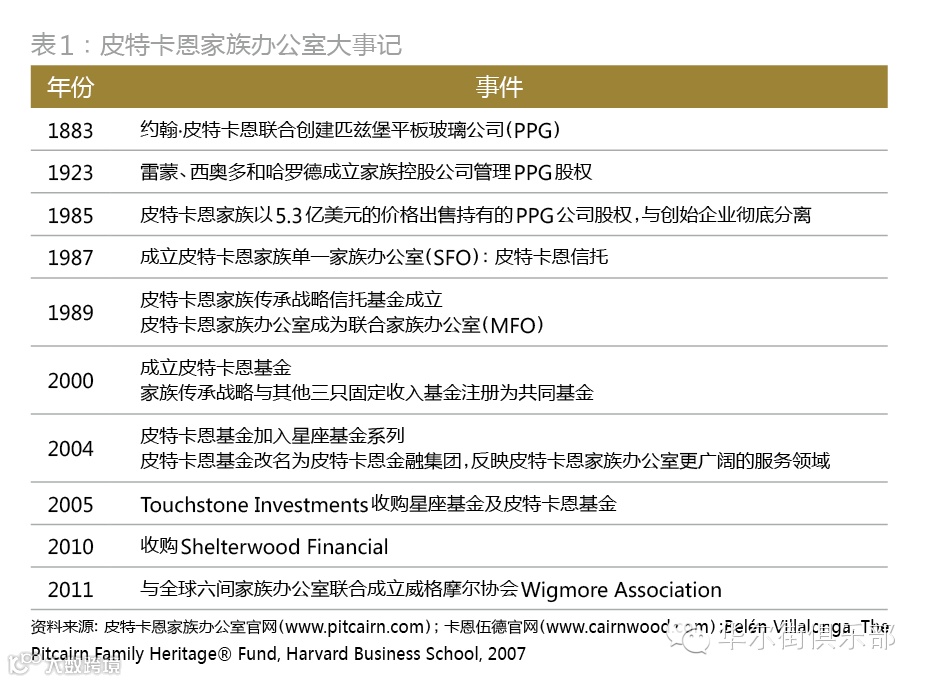 对于第二个问题,皮特卡恩家族的实践同样提供了一个可供参考的样本。家族办公室在功能上替代了家族企业PPG,在管理家族事务的同时,逐渐变成新的皮特卡恩家族企业,同时扮演着双重角色。皮特卡恩家族企业的模式转变并不是个案,出售创始企业股权之后将家族办公室作为新的事业平台是不少家族的选择。