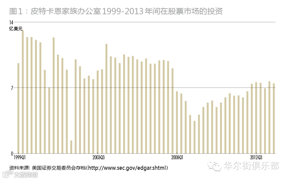 在过去的十几年间,皮特卡恩家族平均每年投资9亿美元于股票市场(图1)。如今,皮特卡恩家族办公室已拥有90年的历史,也有26年联合家族办公室的经验,旗下管理着360亿美元的资产,其110个家族客户中42个都是几代以上的家族。