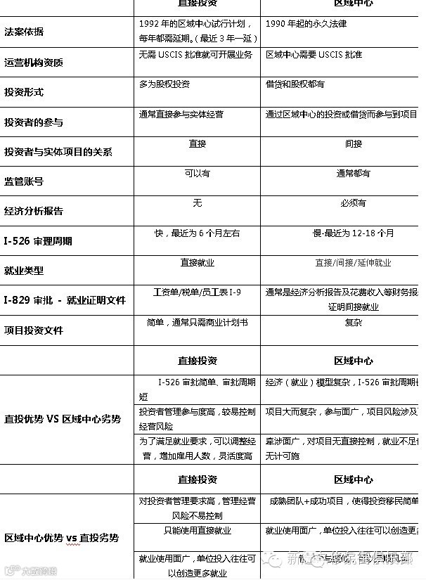 新起点资深移民顾问收集过去EB5项目和一些资料为大家总结成下列一张图表。相信您在看完这张表后,你会彻底明白直投和区域中心项目的区别在哪里?