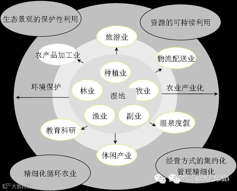 农业休闲综合体的综合产业链包括核心产业、支持产业、配套产业、衍生产业四个层次的产业群。