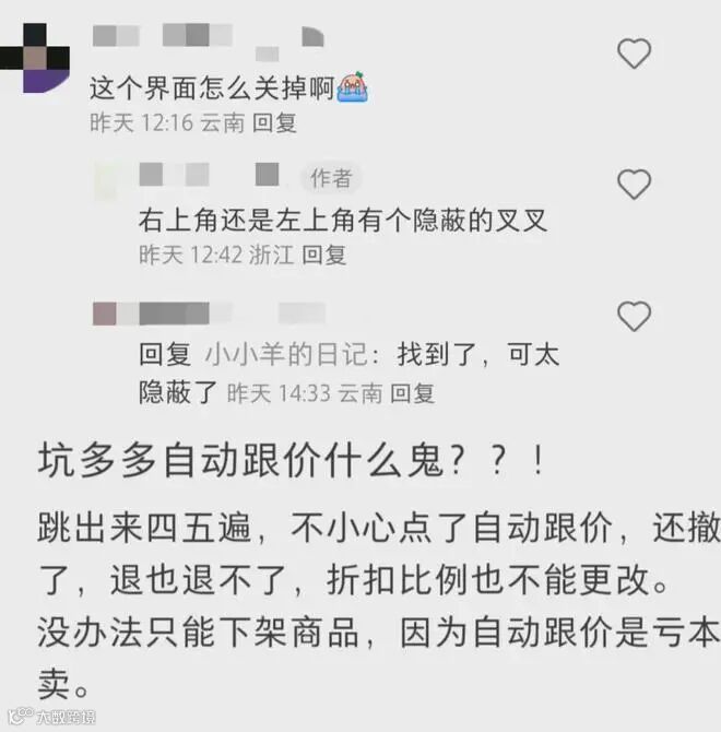 另外,有不少商家还反映,自动跟价功能的弹窗不仅不易关闭,而且还会多次弹出,如果不小心点了自动跟价,就无法撤销,只能下架商品。