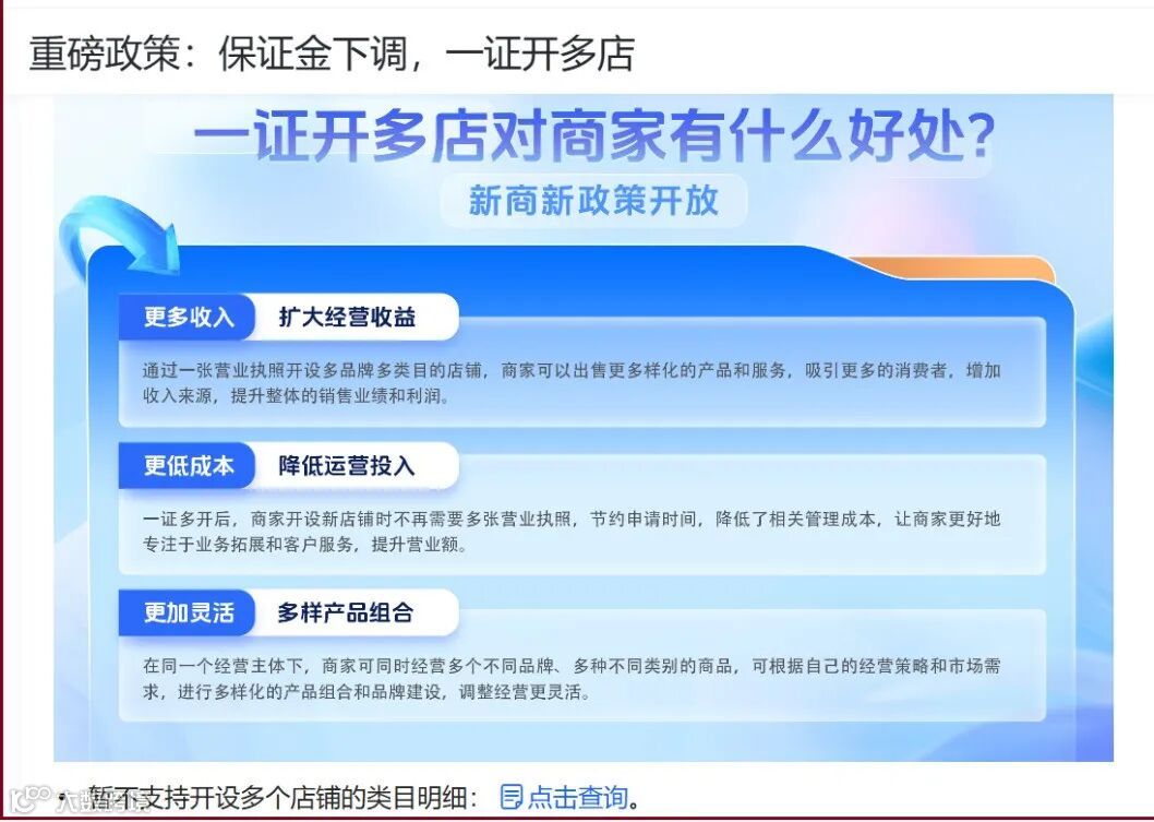 总而言之,保证金下调和一店多开这两大政策的推出,为商家提供了难得的发展机遇,商家可以充分利用这一利好政策,创新经营模式和产品服务,提升自己的平台竞争力和市场竞争力。