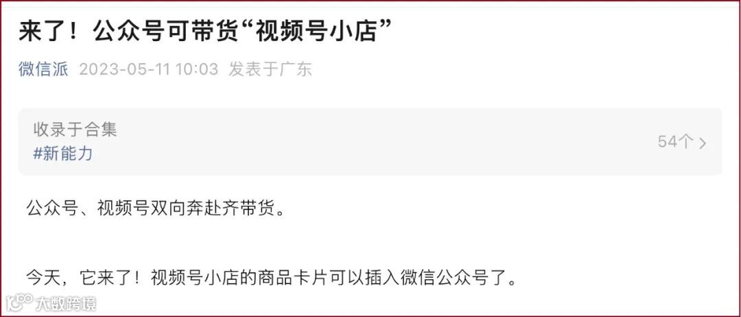 此举可以说是公众号的一次重大变革,两者打通之后,视频号小店可以借公众号导流、分销商品,公众号则能拓展新的变现途径。