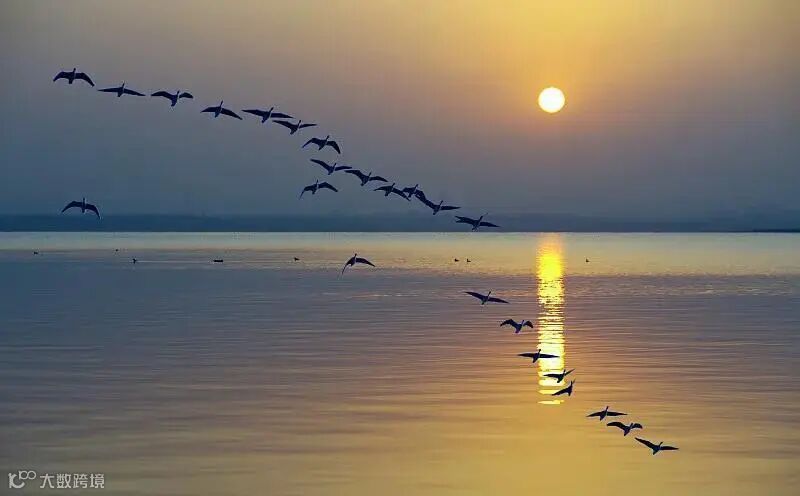 鸿雁为候鸟,春天从南方迁到北方繁衍后代,秋天再迁往南方温暖之地过冬。雨水节气之后,在南方过冬的鸿雁呈“一字形”或“人字形”雁阵向北迁徙。