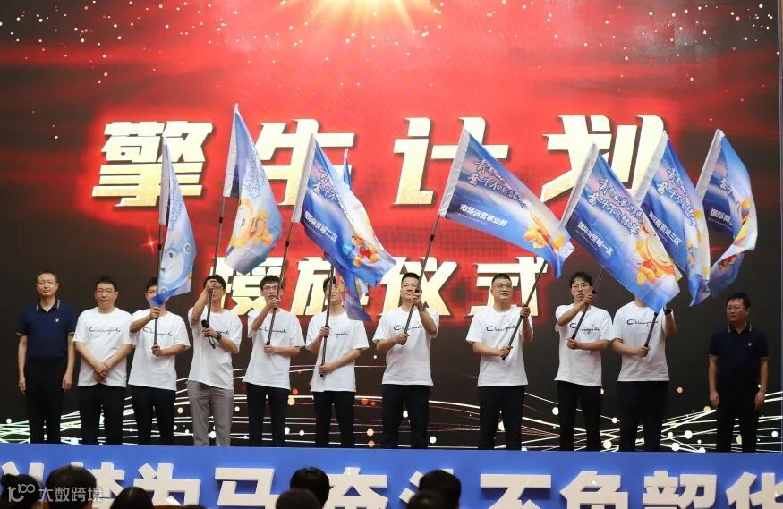 集团副总经理张奇真与市场运营公司总经理王向荣为各区学员代表授旗。飘扬的旗帜指引着学员们的努力方向,青春以梦为马,梦想不负韶华!