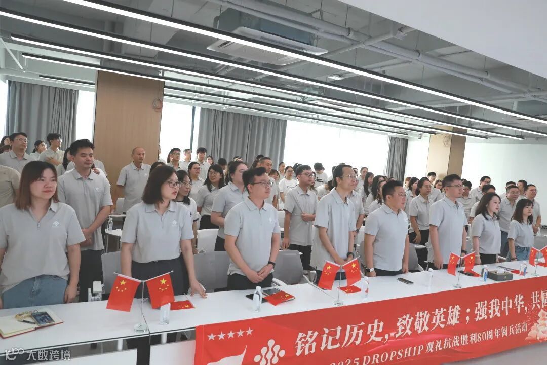 2025年9月3日上午9时,纪念中国人民抗日战争暨世界反法西斯战争胜利80周年大会在北京天安门广场隆重举行。宁波卓菩施朴国际贸易有限公司组织全体员工集体观看这场气势恢宏的阅兵盛典,共同回顾那段艰苦的抗战岁月,致敬为国家和民族解放事业英勇献身的英雄们。