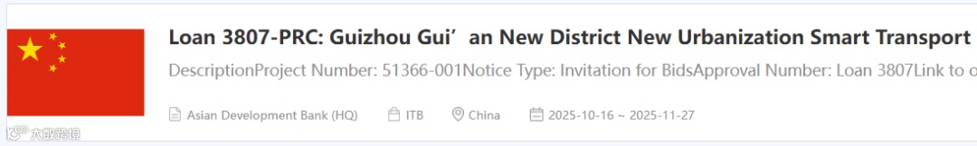 亚洲开发银行(ADB) 支持中国贵州省贵安新区新型城镇化智慧交通系统开发项目采购80辆电动公交车 发布招标
