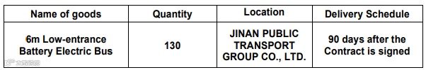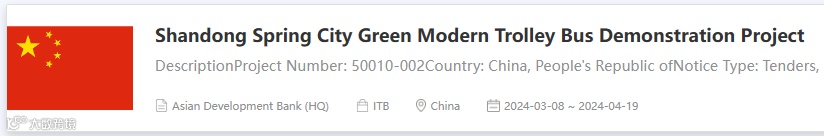 亚洲开发银行(ADB) 支持中国山东泉城绿色现代无轨电车示范项目 为采购130辆6米电动客车 发布招标