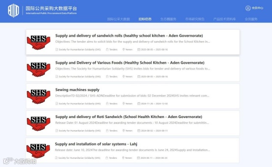 Society for Humanitarian Solidarity (SHS)近期发布了以下采购招标项目: