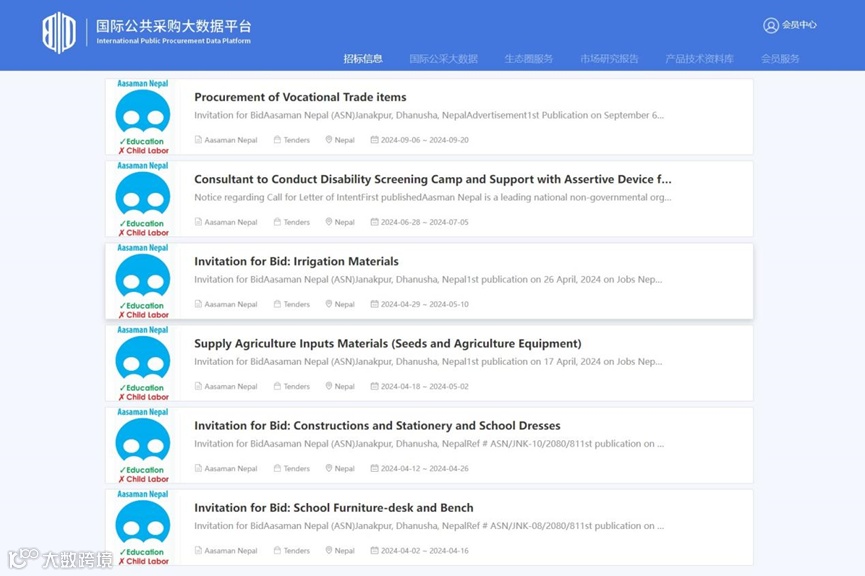 可访问国际公共采购大数据平台获取