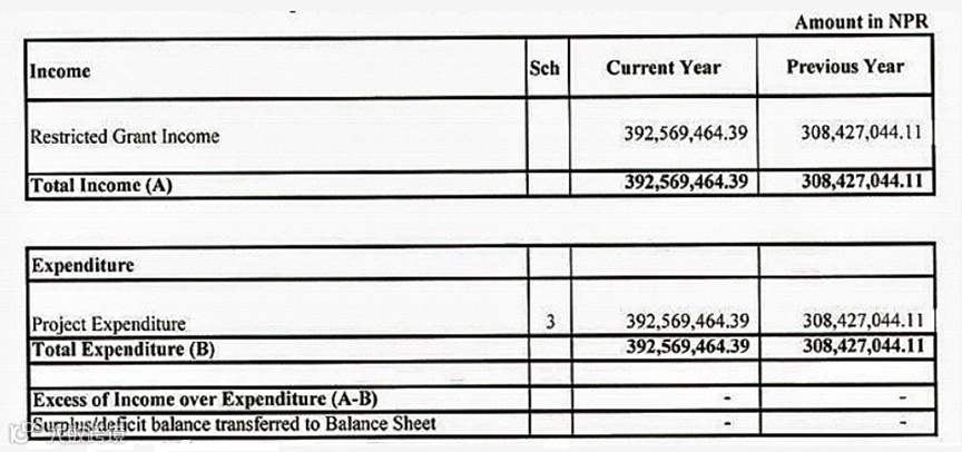如下图所示,ASN在2022年度的总收入为392569464.39尼泊尔卢比(NPR),比2021年度的308427044.11卢比增长了约27.3%。ASN在2022年度和2021年度的项目支出均与同年的收入相同。