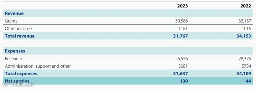 如下图所示,WorldFish 2023年的总收入为31767000美元,比2022年的34153000美元减少了约7%。其中: 捐款收入为30586000美元,占比约为96.2%,比2022年的33137美元减少了约7.7%; 其他收入共计1181000美元,占比约为3.8%,比2022年的1016000美元增长了约16.2%。