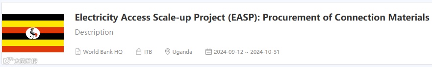 1. 乌干达政府已从世界银行获得资金,用于支付电力接入扩建项目(EASP)的费用,并打算将部分收益用于支付连接材料采购合同项下的款项。