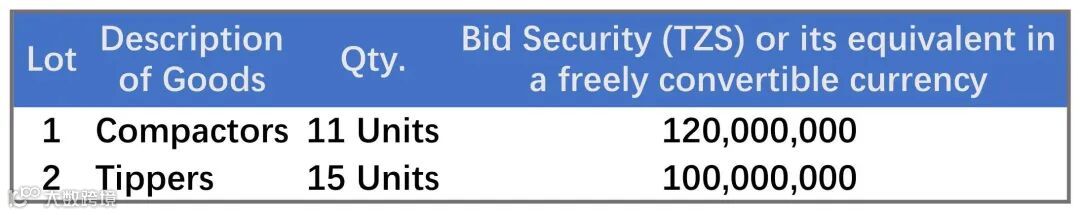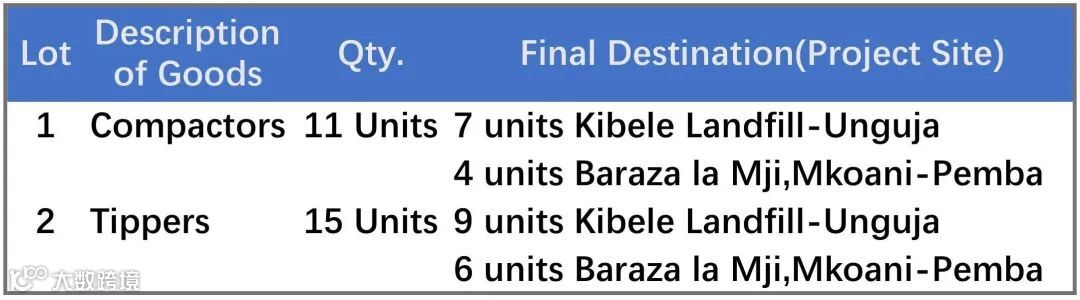 2. 桑给巴尔首席秘书长办公室财务和规划部现邀请合格投标人对桑给巴尔市固体废物管理设备的供应进行密封投标,如下表所示。