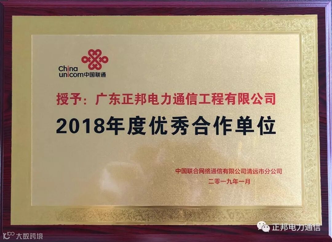 导读:春节前可谓喜讯连连,中国联通清远市分公司为广东正邦电力通信工程有限公司授予2018年度优秀合作单位荣誉...